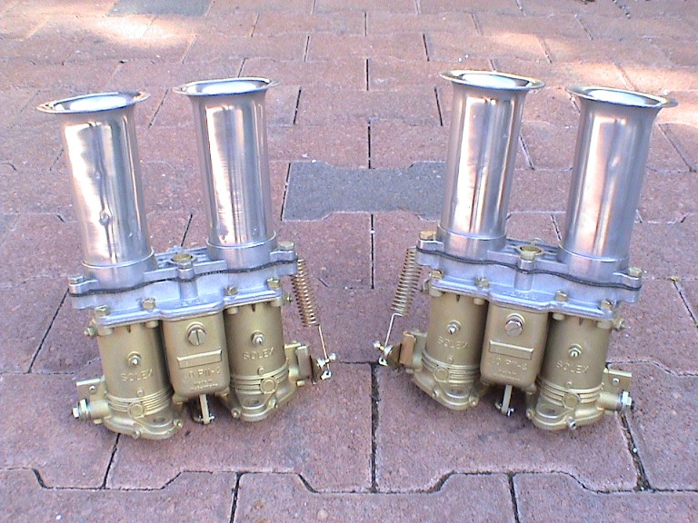 Solex 40PII, sandcast aluminum dual barrel carburetors, both short and tall,